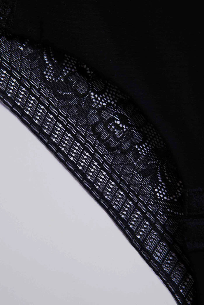 Renda floral cortada a laser nas nádegas com tanga e efeito modelador. Tecido macio com ajuste ergonómico perfeito ao corpo e tão fino que é imperceptível sob a roupa.