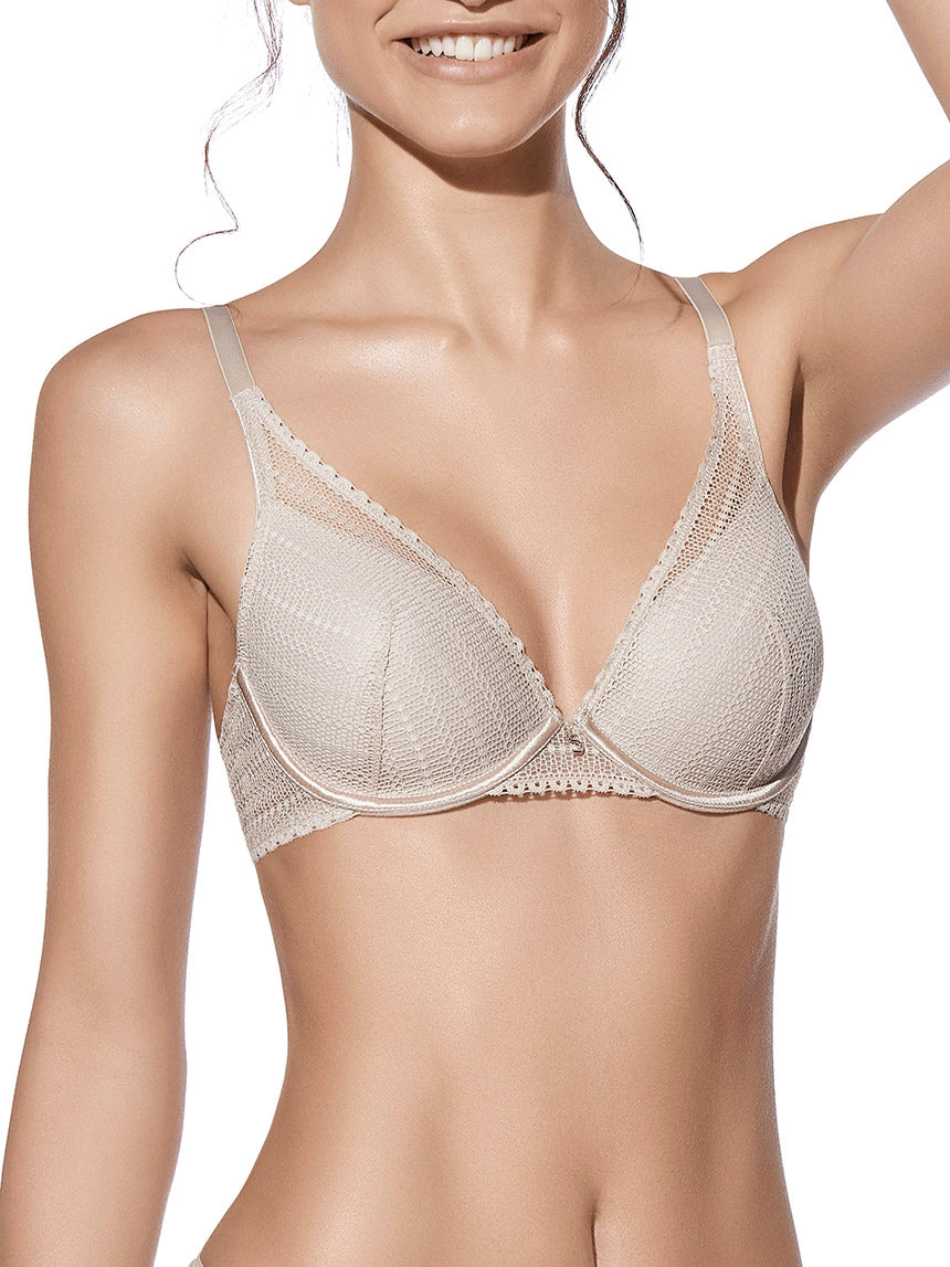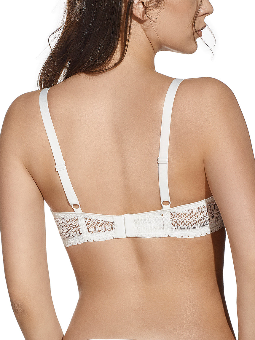 Soutien bralette de renda em croché com aros e copa almofadada/com relevo.